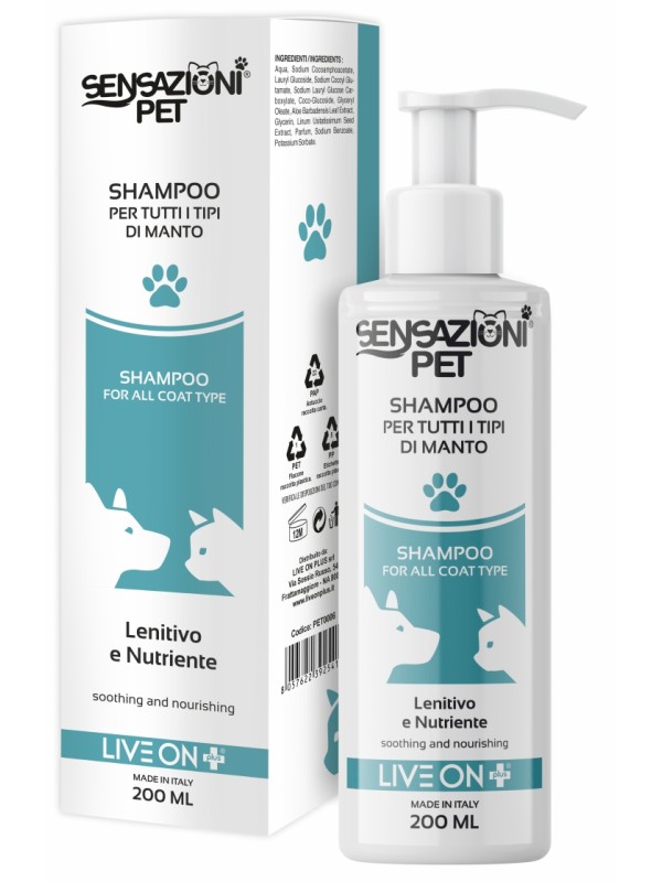 Shampoo universale per cani e gatti, ideale per ogni razza e tipo di manto.