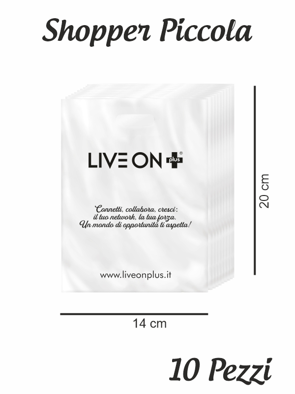 Pratico pacchetto da 10 buste, ciascuna misura 14x20 cm, realizzate in plastica lucida e resistente.